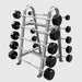 Redesigned for superior functionality and modern appeal, the Horizontal Barbell Rack offers a clean, efficient solution for organizing your barbells. Featuring a dual-sided design, it securely holds up to 10 fixed barbells or curl bars, keeping your training area tidy and accessible.